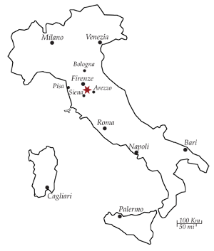 Within 30/40 kms there are Florence, Arezzo and Siena (the first two comfortably reachable also by train from the station of Bucine that is less than 10 minutes by car). |