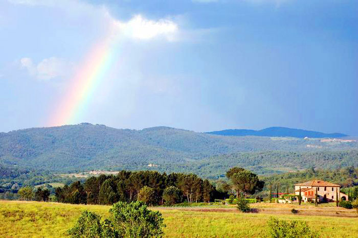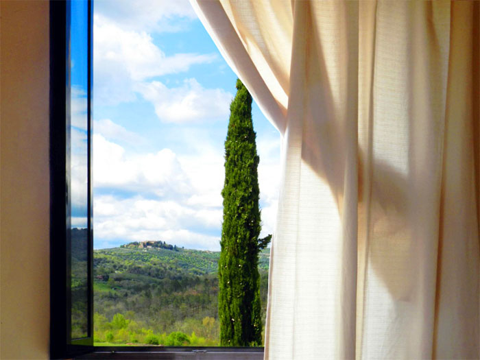 It has sweet hills and sweeping valleys, marked by noble cypress trees and adorned with vineyards, olive groves, and large forests of oaks, giving shade from the heat of the summer, the woods have trails and road for walks, mountain biking and horseback riding.