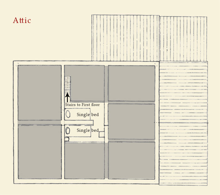 - 1 attic with 2 single beds accessed from one of the bedrooms (this is the +2).