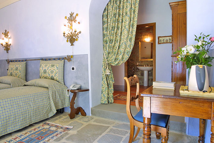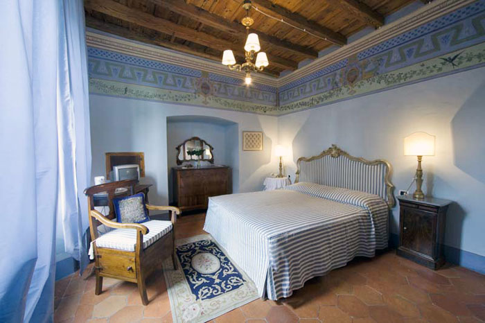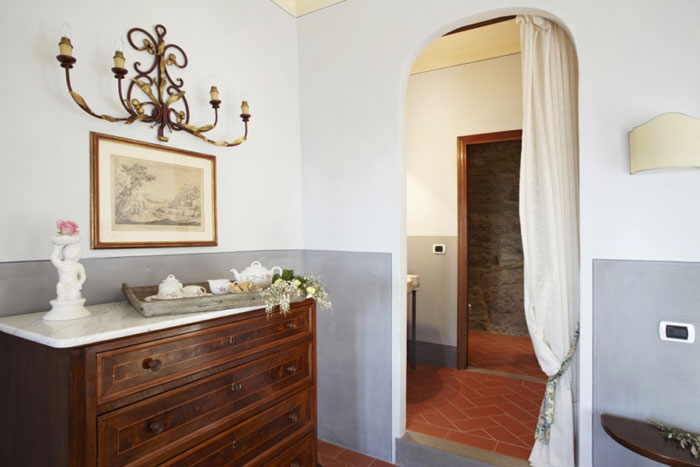 - Camera delle Rondini: Queen bedroom with en-suite bathroom with shower (on request the queen bed can be separated in two single beds)