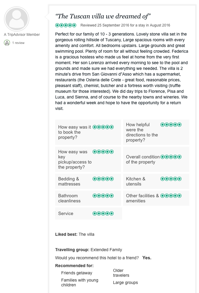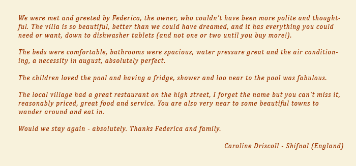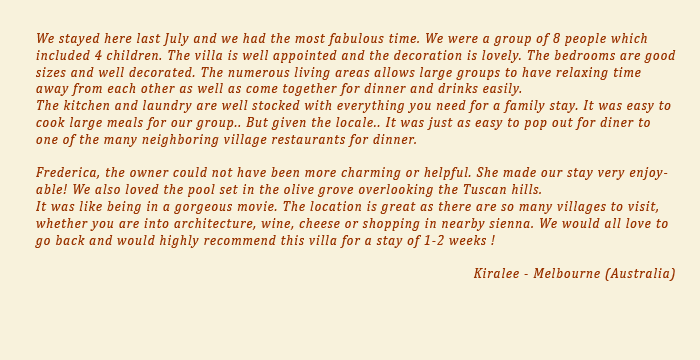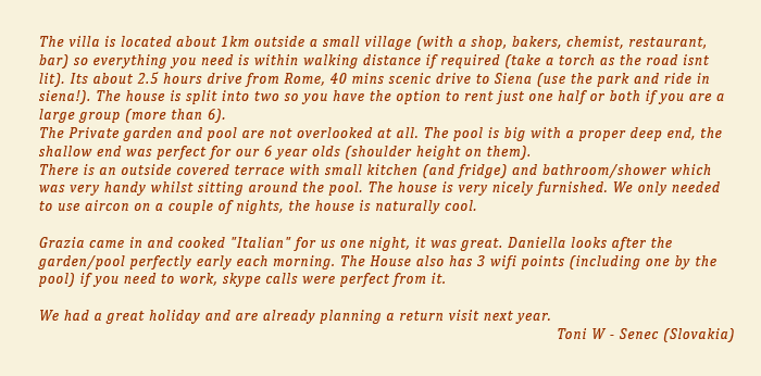 The villa offers very comfortable accommodation nestling in the stunning countryside close to one of the central villages of the Crete Senese.