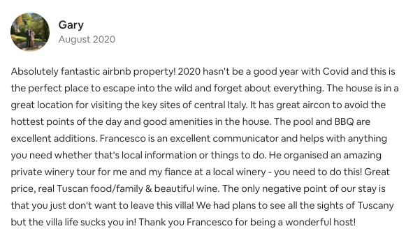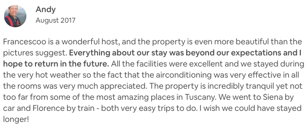 The villa is only 6 km (3.7 miles) from Montevarchi the main town of the Arno Valley with a regular train service to Florence (52 direct trains a day), Rome