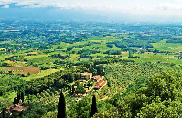 The Estate is surrounded by green olive groves, active vineyards and beautiful oak woods in an area full of charm and history. Dominating the countryside and landmark of the Estate, is the Tower of Galatrona which foundations date back to the Etruscans and Romans.