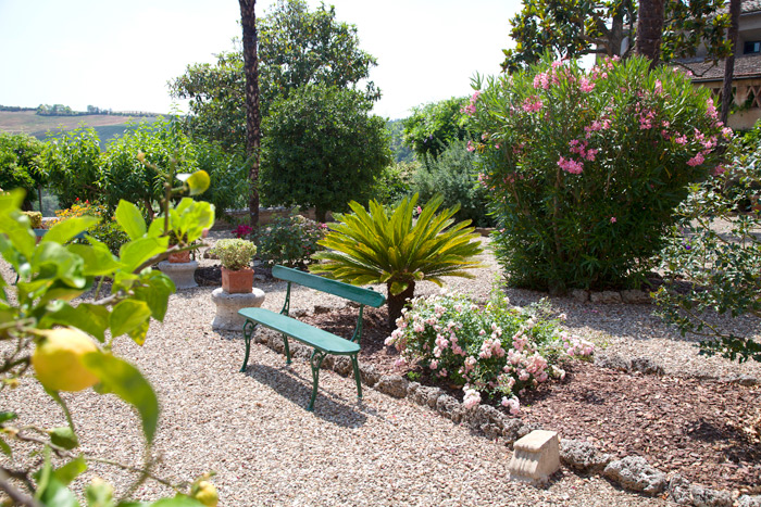 The long, open side of the garden overlooks the spectacular landscape of the Crete Senesi and faces towards south-east. |