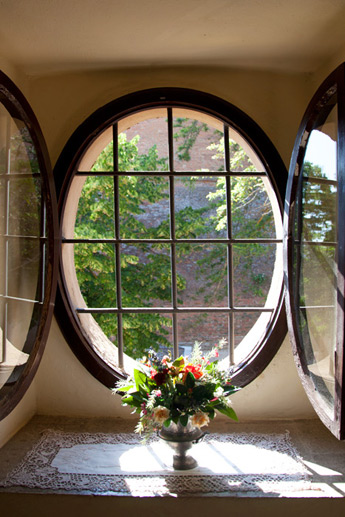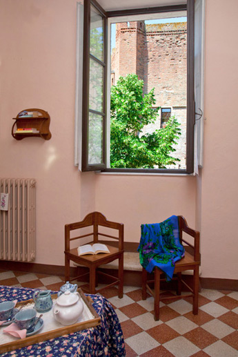 The spacious rooms have high ceilings, with windows overlooking the valley and the castle.