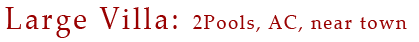 : Air Conditioning in the entire villa, Near town, 2 fireplaces, 2 wood pizza ovens, barbecue, 2 fully equipped kitchens, screen on windows, piano, big art garden with amphitheater, private parking.